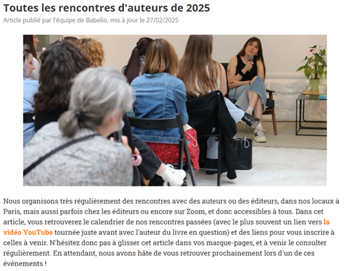 La plateforme propose également des interviews d'auteurs et des articles sur l'actualité littéraire. Ces contenus exclusifs permettent aux lecteurs de mieux connaître leurs auteurs préférés, de découvrir leurs sources d'inspiration et leurs projets à venir. Les articles couvrent une grande variété de sujets, allant des critiques de livres aux conseils de lecture en passant par des analyses littéraires. J’ai eu la chance de participer à la rédaction d’un article pour la Saint-Valentin, et c’était génial de se retrouver sur cette page !